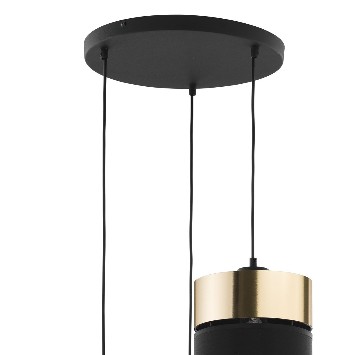 The HILTON lamp collection, designed by TK Lighting, offers an intriguing proposition with its distinctive combination of black and gold colors [1][2]. These lamps feature a unique design where two shades are combined with a centimeter gap between them. During the day, this gap serves as a decorative element. However, the real effect of the design becomes apparent when the light is turned on. The light gently permeates through the opening, creating a luminous ring on the ceiling or walls.