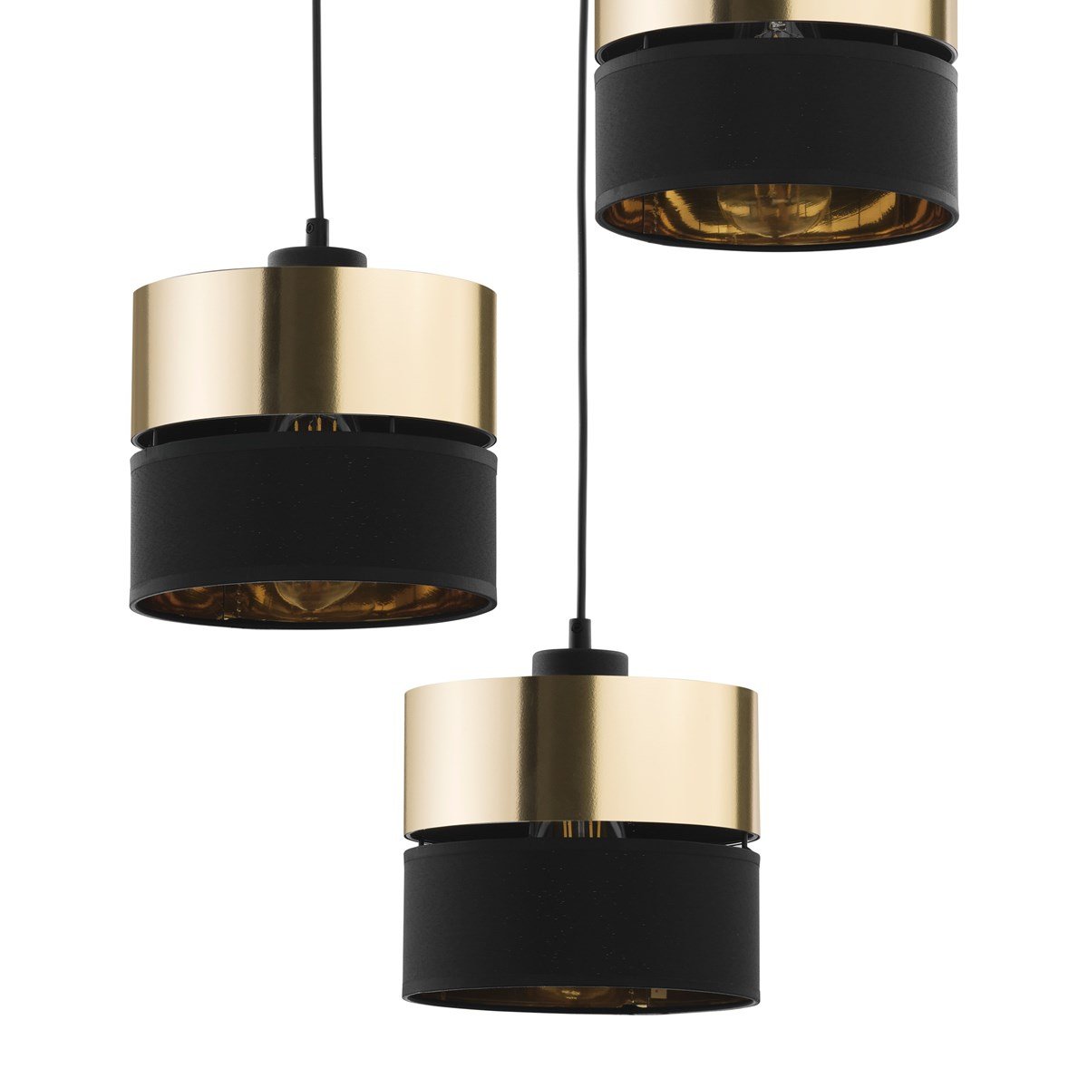 The HILTON lamp collection by TK Lighting provides a captivating design with its unique combination of colors and the luminous effect it creates when illuminated. The use of gold-colored foil lining on the inside of the shade adds to the overall aesthetic appeal and enhances the release of light through the centimeter gap between the two shades.
