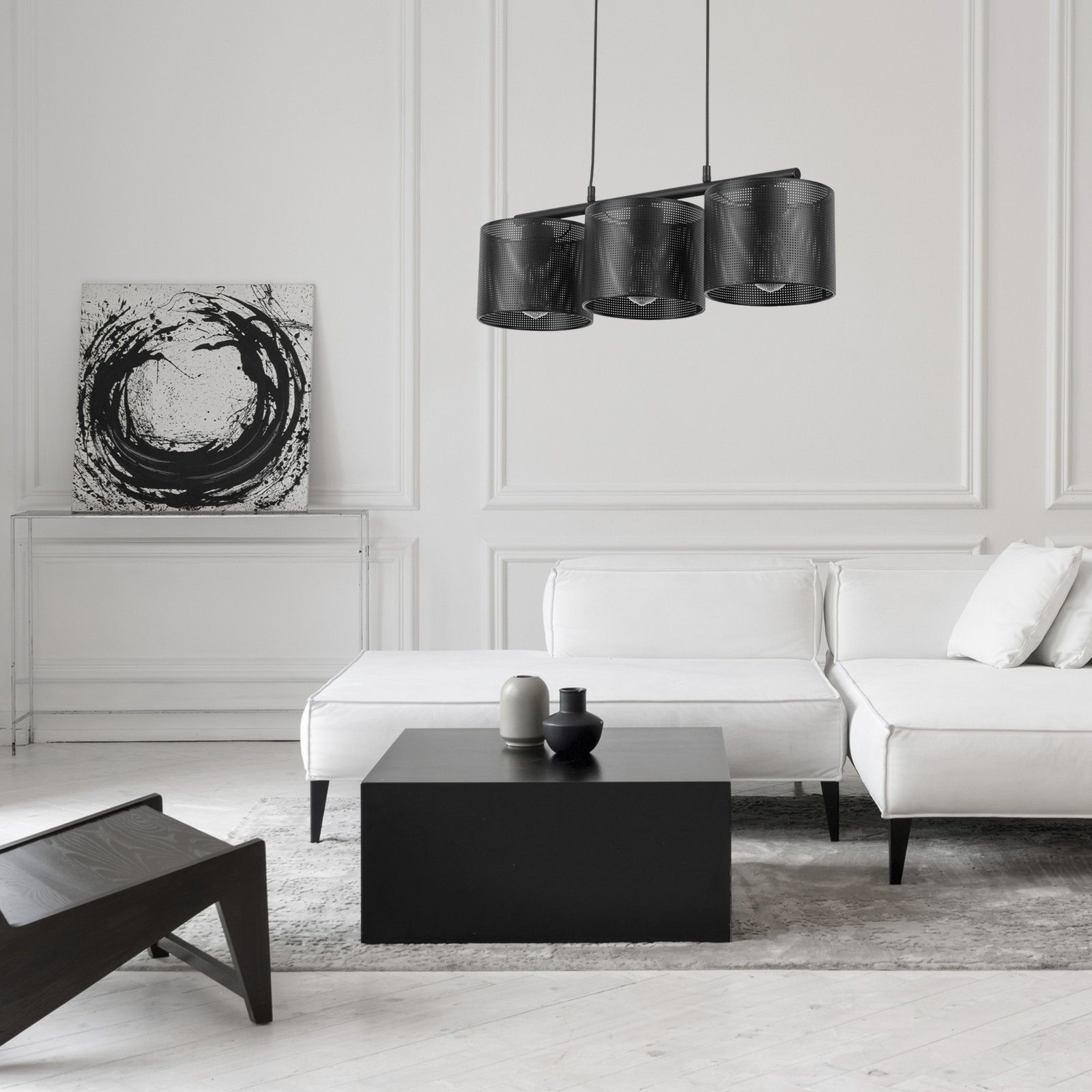 They have a classic and modern appearance at the same time. The lampshades have tiny holes that delicately diffuse the light and create a unique effect in the room. They attract attention as unconventional decorations. If you are looking for central lighting for your living room, office, dining room, or bedroom, the model described will work perfectly in that role. The MORENA collection offers ceiling lamps, floor lamps, night lamps, and wall sconces.