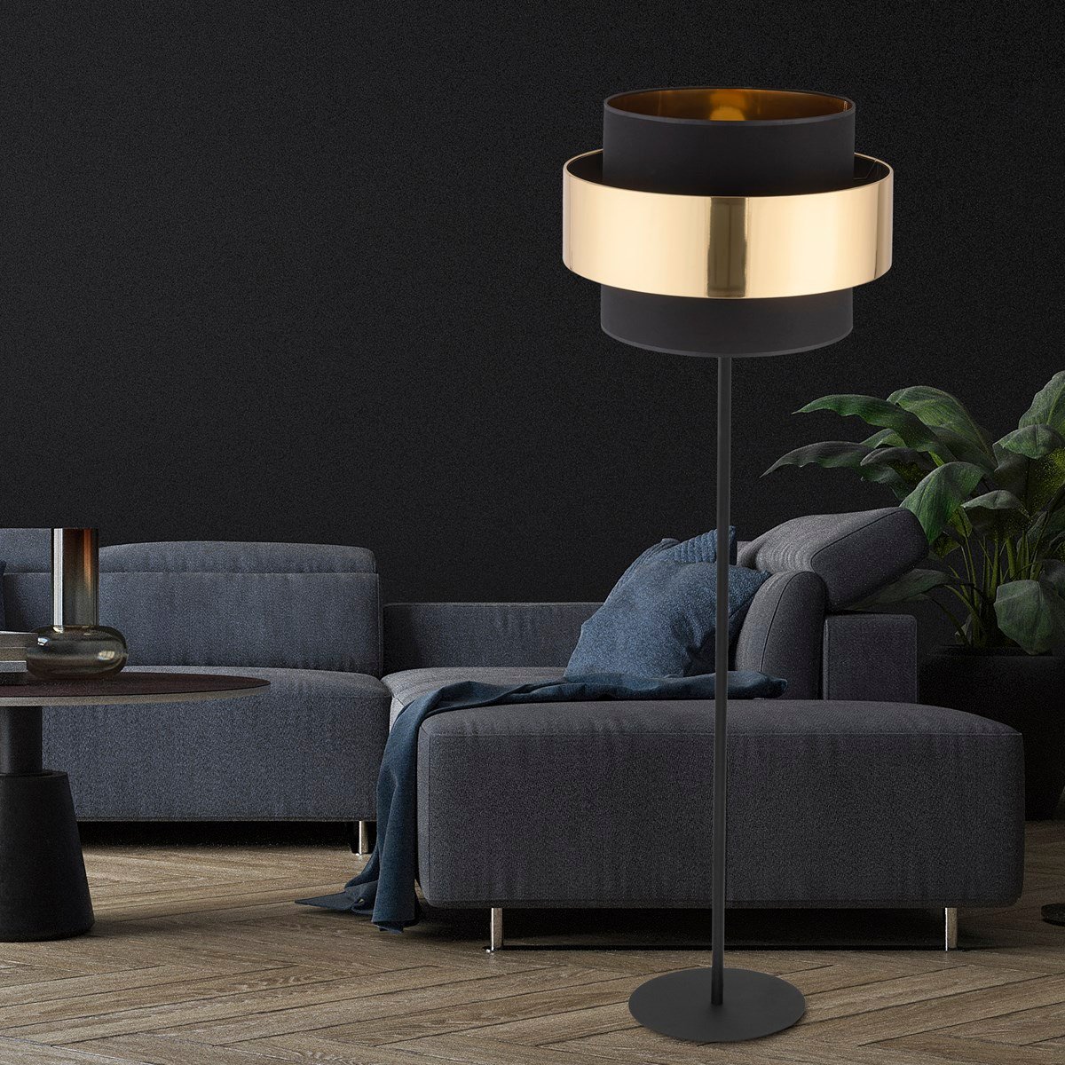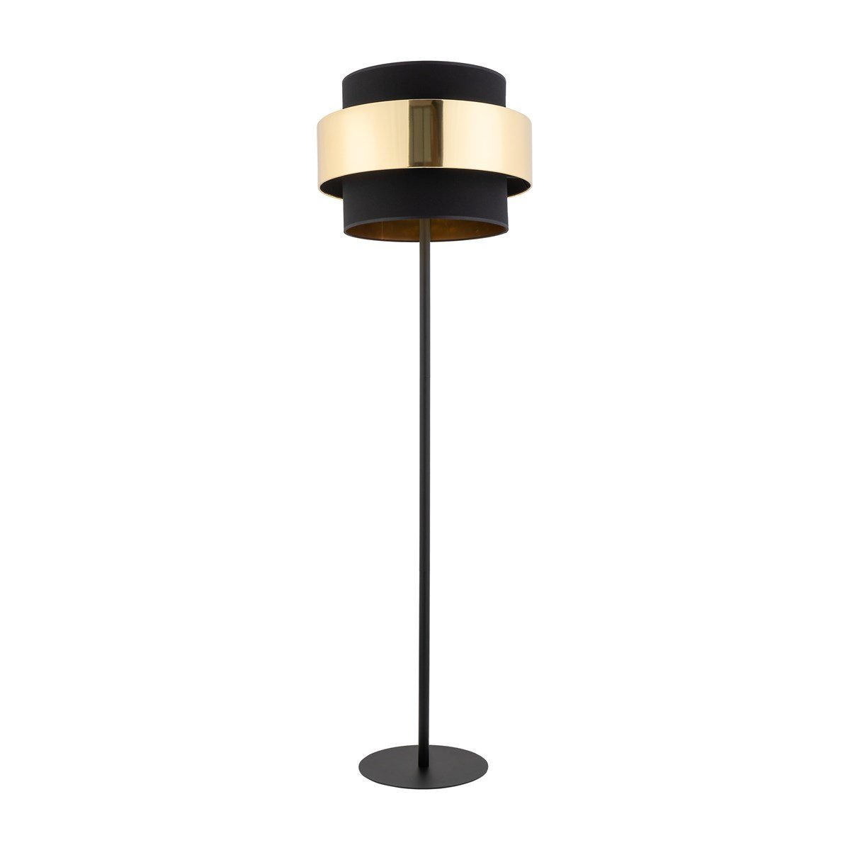 Experience the epitome of sophistication with these stunning lamps featuring two cylindrical shades of contrasting sizes – one in lustrous gold and the other in sleek black.